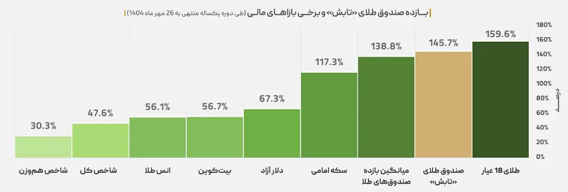 در مجموع، داده‌های یکساله به روشنی نشان می‌دهد که در فضای اقتصادی این دوره، سرمایه‌گذاری در بازار طلا، به ویژه از طریق ابزارهای مالی ساختاریافته و تحت نظارت همچون صندوق «تابش»، توانسته است بازدهی قابل توجهی را نصیب سرمایه‌گذاران کند و از بازارهای سنتی مانند ارز و سهام و همچنین بازارهای نوین مانند رمزارزها، به مراتب پیشی بگیرد.