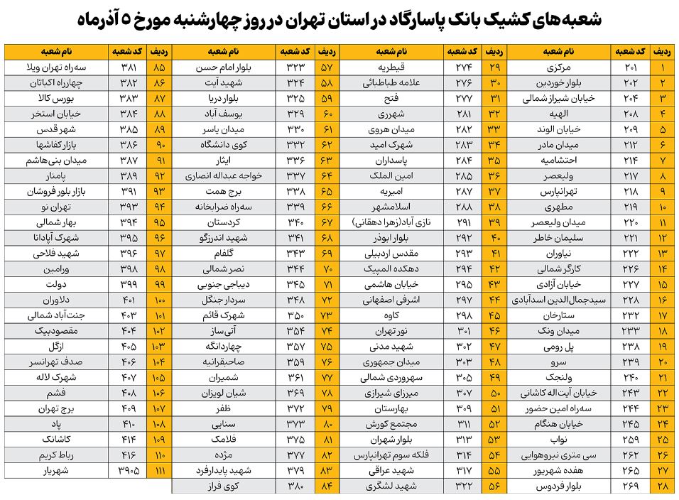 شایان ذکر است نحوه فعالیت شعبهها در سایر استانها مطابق رویه جاری و براساس تصمیم استانداریهای مربوطه خواهد بود.